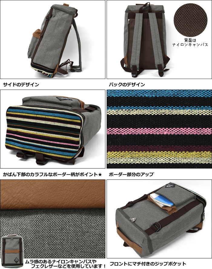 ■ 背面サイドのジップはメイン収納につながっているので、背負ったまま荷物を取り出すことができ機能的! ■ サイズ・・・たて約43cm×よこ(底部)約30cm×まち約16cm ※多少の誤差はご了承ください ■ 商品の性質上、柄の位置やデザインが若干違う場合がありますのでご了承ください。