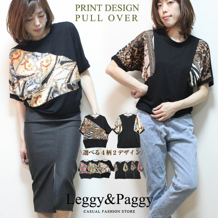 柄切り替えデザインプルオーバー ビッグシルエットT-shirt Tシャツ ゆったりTシャツ ダボT ダボっとゆったりカジュアルコーデにもおすすめ オーバーサイズTシャツ メール便送料無料 ルーズ プルオーバー スカーフ柄 柄物 チェーン柄 半袖