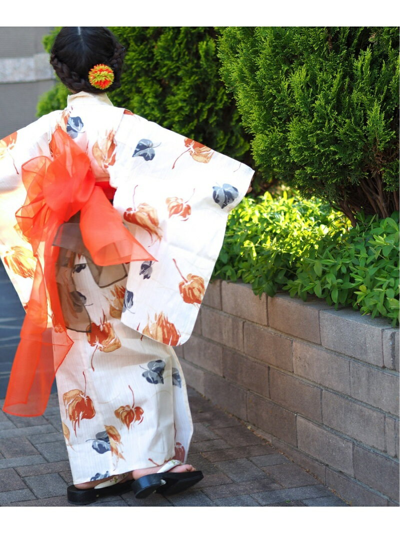 【サイズ】丈は揚げ前のサイズです(納品時はミシンにて揚げをしております)◆100(適応身長95〜105cm)身丈 約90cm袖丈 約45cm裄丈 約45cm下駄 17cm◆110(適応身長105〜115cm)身丈 約105cm袖丈 約50cm裄丈 約50cm下駄 18cm◆120(適応身長115〜125cm)身丈 約115cm袖丈 約55cm裄丈 約55cm下駄 19cm◆130(適応身長125〜135cm)身丈 約125cm袖丈 約57cm裄丈 約60cm下駄 21cm【素材】ゆかた:綿100%帯:ポリエステル下駄:桐【キッズ浴衣について】こちらの浴衣は、届いてすぐに着用出来る様に、浴衣の両衿先に腰紐が1本づつ縫い付けてあるので楽に着用出来ます。