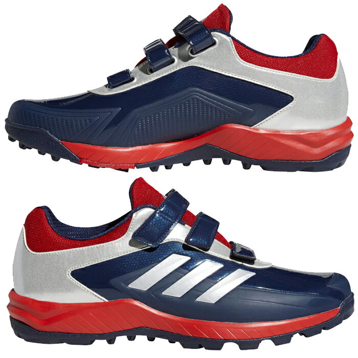 adidas アディダス 野球トレーニングシューズ アディピュアTR マジックベルト アップシューズ ゴム底 ブルー・レッド・ホワイト